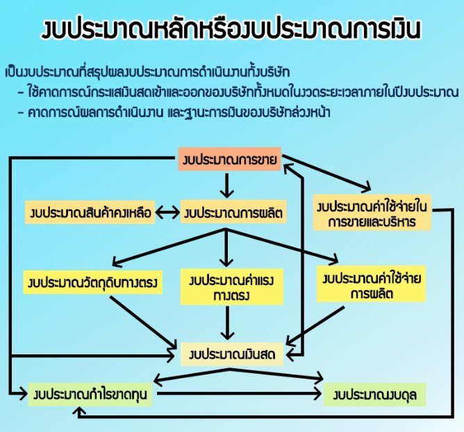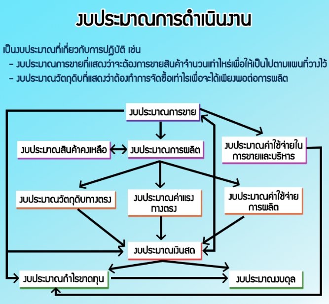 - งบประมาณวัตถุดิบที่แสดงว่าต้องทำการจัดซื้อเท่าไหร่ เพื่อจะได้เพียงพอต่อการผลิต
