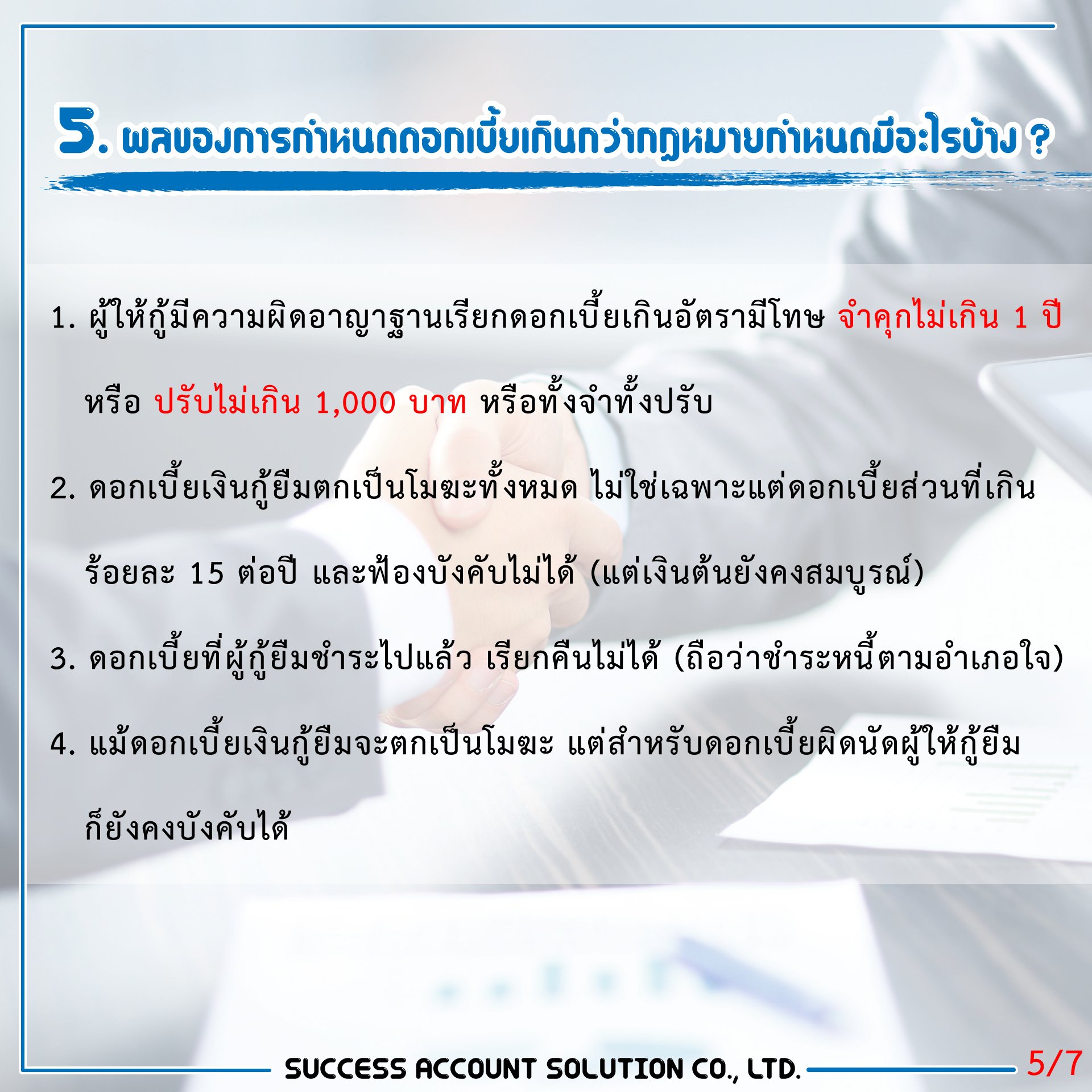 5. ผลของการกำหนดดอกเบี้ยเกินกว่ากฎหมายกำหนดมีอะไรบ้าง ?