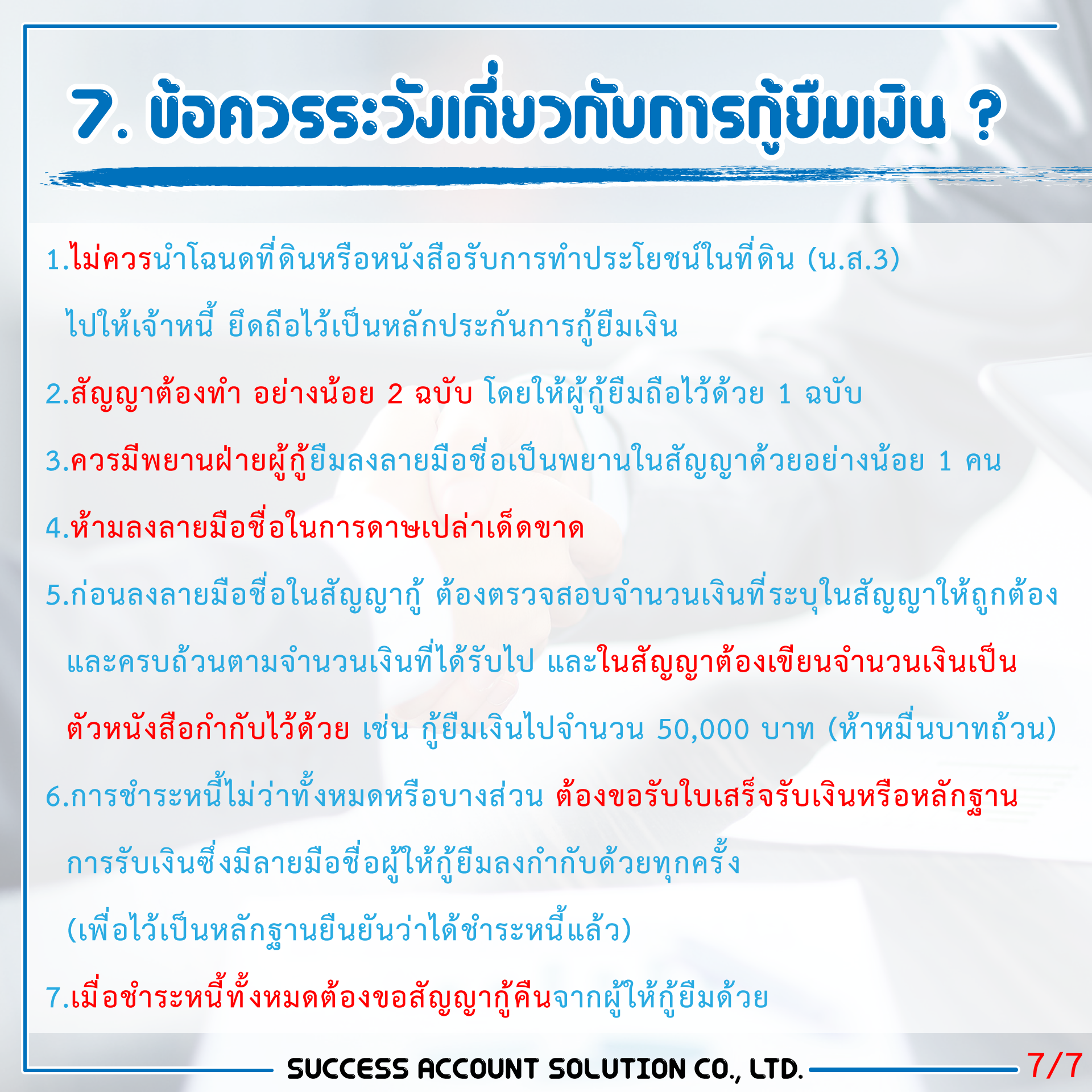 7. ข้อควรระวังเกี่ยวกับการกู้ยืมเงิน ?